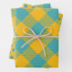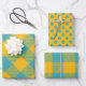 Yellow & Teal Squiggly Buffalo Plaid & Polka Dots Geschenkpapier Set