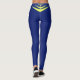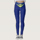 Eleganter dreifach gelber Bumerang auf blauen Leggings. Boomerang-Symbole erinnern uns daran, dass das, was umher geht, umherkommt.