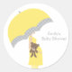 Sweet und schicke Aufkleber mit einer schwangeren Mutter, die einen gelben Schirm und einen kleinen gefüllten Teddybär hält. Ideal für geschlechtsneutrale Babyduschen.
