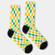 Yellow White Green Checkered Design Socken