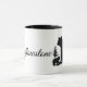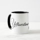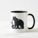 Diese Keramik Kaffee-Tasse wird mit einem Kunstdruck eines Bären und Beulers mit Yellowstone-Text gezeigt. Schwarzes Interieur und Griff. Passen Sie dieses Objekt an oder kaufen Sie, wie es ist. Bild