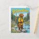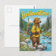 Das Abenteuer des Yellowstone erleben Sie mit dieser Vintagen Postkarte. Mit einem freundlichen Bär, der als Parkwächter mit Rucksack und Hut gekleidet ist, stehend von einem kristallklaren Bach in den Bergen, verbindet dieses Design Charme und Wildnis. Ein perfekter Sake für Reisende, Nationalparkbegeisterte oder alle, die die natürliche Schönheit des Yellowstone Lieben.