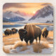 Untersetzer Set wird mit einem Foto-Kunstdruck einer Büffel-Herde im Yellowstone Park gezeigt. Lizenziertes Bild