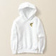 Unisex Girls oder Jungs Sweatshirt hoodie von American Apparel hat lange Ärmel und eine Haube. Hat einen großen Druck von einem Fisch beißen einen Haken auf der Rückseite zusammen mit Text-Sprichwort "Yellowstone". Front hat eine kleinere Version von Druck und Text auf der oberen Brustfläche. In der Größe M und in Weiß dargestellt. Kundenspezifisch anpassen oder kaufen, wie es ist.