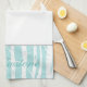 Weißes Handtuch mit einem hübschen Bild von weißen Aspen über dem Aqua-Hintergrund bildet ein gestreiftes Muster an jedem Ende des Handtuchs. Text "Yellowstone" in einem extravaganten Drehbuch in Aqua und einem dünnen koordinierenden Streifen in einem weichen, leicht grau. Anpassen oder kaufen, wie gezeigt.