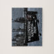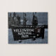 Puzzle zeigt das berühmte Schild des Yellowstone Nationalparks im Winter.