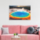 Die überdachte Leinenkunst wird mit einem Foto-Kunstdruck des berühmten Prisma Thermal Hot Pot im Yellowstone Nationalpark aus Vogelperspektive gezeigt. Lizenziertes Bild