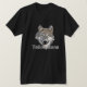 Ein einfaches Bella-Leinwand-Shirt für Männer in Schwarz mit Crew Nacken, kurzen Ärmeln, gezeigt mit einem Kunstdruck eines Wolfenkopfes mit großem, fetten Text aus Yellowstone. Passen Sie dieses Shirt an oder kaufen Sie, wie es ist. Börsenbild all-free-download.com