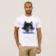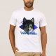 Ein einfaches Bella-Leinwand-Shirt für Männer in Weiß mit Crew-Hals, kurzen Ärmeln, gezeigt mit einem Kunstdruck eines Wolfenkopfes mit großem, fetten Text aus Yellowstone. Passen Sie dieses Shirt an oder kaufen Sie, wie es ist. Börsenbild all-free-download.com