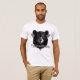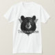 Ein einfaches Bella-Leinwand-Shirt für Männer in Weiß mit Crew Nacken, kurzen Ärmeln, gezeigt mit einem Kunstdruck eines Bärenkopfes mit großem, fetten Text aus Yellowstone. Passen Sie dieses Shirt an oder kaufen Sie, wie es ist. Börsenbild all-free-download.com
