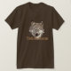 Ein einfaches Bella-Leinwand-Shirt für Männer in Braun mit Crew-Nacken, kurzen Ärmeln, gezeigt mit einem Kunstdruck eines Wolfenkopfes mit einem großen, fetten Text aus Yellowstone. Passen Sie dieses Shirt an oder kaufen Sie, wie es ist. Börsenbild all-free-download.com