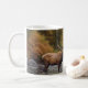 Tasse des Kaffees mit einem Foto-Kunstdruck von Elch im Fluss im Yellowstone Nationalpark gezeigt. Passen Sie dieses Objekt an oder kaufen Sie, wie es ist.