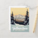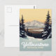 Capture the breathtaking tranquility of Yellowstone National Park in winter with this scenic postcard. The design features a snowy landscape, framed by snow-dusted pine trees, overlooking a valley and distant snow-capped mountains under a warm, golden sky. This vintage-style travel poster artwork is perfect for nature enthusiasts, winter sports fans, and those who love American wilderness landscapes. Ideal for sending holiday greetings, keeping as a collectible souvenir, or framing as rustic wall decor.
