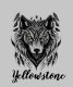 Das gekleidete Sweatshirt dieses Jungen wird in hellem Stahl gezeigt. Lange Ärmel, Kängurutaschen und Pull-over-Styling mit der Phrase "Yellowstone" ergänzt durch einen Wolfskopfdruck. Anpassen oder kaufen, wie es ist.