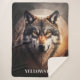 Dieser Sherpa-Wurfdecke wird in einem Foto eines Wolfs gezeigt. Text von Yellowstone, ganz unten geschrieben. Passen Sie dieses Objekt an oder kaufen Sie es wie geplant. Lizenziertes Bild