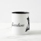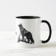 Diese Keramik Kaffee-Tasse wird mit einem Kunstdruck eines Wolfs mit Yellowstone-Text gezeigt. Schwarzes Interieur und Griff. Passen Sie dieses Objekt an oder kaufen Sie, wie es ist. Bild