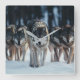 Diese Wanduhr wird in einem stilvollen Foto von Yellowstone Wölfen gezeigt. Passen Sie dieses Objekt an oder kaufen Sie es wie gezeigt. Lizenziertes Bild