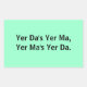Yer Da's Yer Ma, Yer Mas Yer Da: Sticker, mit schwarzen Buchstaben auf blauem Hintergrund.