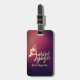 Yoga Fitness Instructor Custom Luggage Tag Template - Elegante Gold Aerial Yoga Pose und handgeschriebene Script Typografie auf Burgundy Red Lila Texture Background.