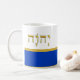 YHWH, der Name des Almighty Schriftart im Gold 3D und eine blaue Fahne die Tasse herum kleidend.