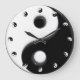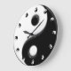 Yin Yang Wanduhr mit einer zentralen Yin Yang Grafik in der Mitte und in 12 kleineren Versionen der Grafik als Stundenmarkierungen.