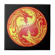 Dieses atemberaubende yin Yang-Ausrüstungsbeschreibungen zwei rot und gelbe Stammes- Drachen. Verwickelte Linien und Wirbel verziert beide Seiten dieses traditionellen Symbols, das ein schönes Muster schafft. Die zwei Drachen fließen von der Unterseite des Teardrop und haben ihre Münder weit, die in einer aggressiven Position offen sind. Dieses einzigartige yin Yang stellt eine stilvolle Fliese her zu entwerfen.