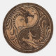 Yin Yang Dragons mit Holzkörneffekt Runder Aufkleber