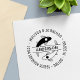 Eine elegante Briefmarke für ein Paar mit einem schlichten, schwarz-weißen Koi-Fisch, der sich umkreist und ein stilvolles Yin Yang-Schild kreiert. Der Familienname wird über die Abbildung geschrieben, während die Vornamen und die Adresse um sie herum gedruckt werden. Bitte beachten Sie, dass Sie die eingegebenen Informationen möglicherweise anpassen müssen, indem Sie einige Zeichen oder Leerzeichen hinzufügen oder löschen, um den Namen und die Adresse korrekt anzupassen.