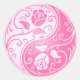 Dieses wunderschöne Yin Yang-Design besticht durch zwei stilisierte Rose. Intrikierte rosa Wirbel zieren beide Seiten dieses traditionellen Symbols und schaffen ein zartes Muster. Die beiden Blume fließen von der Unterseite des Teardrop auf beiden Seiten mit Blätter, die aus den Stielen wachsen. Dieses einzigartige Yin Yang macht ein atemberaubendes und stilvolles Aufkleber-Design.