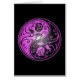 Dieses stylized schöne yin Yang-Ausrüstungsbeschreibungen zwei Stammes- Rosen. Verwickelter lila und schwarzer Wirbel verziert beide Seiten dieses traditionellen Symbols, das ein empfindliches Muster schafft. Die zwei Blumen fließen von der Unterseite des Teardrop auf beiden Seiten mit dem Blätter, das von den Stämmen wächst. Dieses einzigartige yin Yang macht einen atemberaubenden und stilvollen Kartenentwurf.