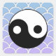Ein schlichtes und elegantes Yang-Symbol, in tiefschwarz, auf einem Hintergrund stilisierter Wellen, in Blau- und Violetttönen. Das Yinyang-Symbol symbolisiert Taoismus, Ausgewogenheit, Harmonie. Erhältlich auf Aufklebern in 7 Formen, inklusive rund, oval, sternförmig, quadratisch und mehr. Von Scarebaby Design, gestützt durch die Zazzle-Garantie.