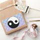 Ein schlichtes und elegantes Yang-Symbol, in tiefschwarz, auf einem Hintergrund stilisierter Wellen, in Blau- und Violetttönen. Das Yinyang-Symbol symbolisiert Taoismus, Ausgewogenheit, Harmonie. Erhältlich auf Aufklebern in 7 Formen, inklusive rund, oval, sternförmig, quadratisch und mehr. Von Scarebaby Design, gestützt durch die Zazzle-Garantie.