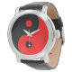 Yin Yang Symbol in Red & Black Stilvolle zeitgenössische Armbanduhr mit dem Taoist Yin Yang Schild.