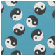 Yin Yang Symbol Stoff in schwarz, weiß und türkisblau.