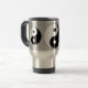 Yin Yang Tasse. Dieser Reisetug aus Edelstahl ist mit einem schwarz-weißen Yin Yang-Symbol dekoriert. "In der Taoistischen Philosophie entstehen Yin und Yang aus einer anfänglichen Stille oder Leere zusammen und bewegen sich weiter zusammen, bis die Stille wieder erreicht ist. Wenn man zum Beispiel einen Stein in einen ruhigen Wasserpool fällt, wird man gleichzeitig Wellen und niedrigere Tröge zwischen ihnen erheben, und dieser Wechsel von Hoch- und Tiefpunkten im Wasser strahlt nach außen aus, bis sich die Bewegung löst und das Becken wieder ruhig ist. Yin-yang ist also immer entgegengesetzt und gleichberechtigt. Wenn eine Qualität ihren Höhepunkt erreicht, wird sie sich natürlich in die entgegengesetzte Qualität verwandeln: Getreide, das im Sommer seine volle Höhe erreicht (Volljang), produziert Samen und die im Winter (vollmundig) in einem endlosen Zyklus" - Wikipedia. Eine tolle Geschenkidee.