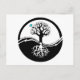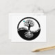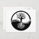 Man sagt, man muss das Böse kennen, um gut zu wissen, und das Yin-Yang-Symbol repräsentiert diese Theorie. Sehr modern aussehender Yang Baum des Lebens in Schwarz-Weiß mit einem blauen Vogel über dem Kopf.