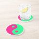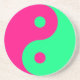 Yin Yang Untersetzer. Dieser Untersetzer aus Sandstein ist mit einem rosa und grünen Yin Yang-Symbol dekoriert. Erstellen Sie ein Set mit verschiedenen Farbkombinationen für die Vielfalt.Erstellen Sie ein Set mit verschiedenen Farbkombinationen für die Vielfalt.