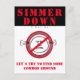 Postcard weiß mit roter und schwarzer Grafik und wütender Mann Kopf umgeben von einem roten Restriktionskreis und "SIMMER DOWN LET'S VERSUCH, EINEN GEMEINSAMEN BODEN ZU FINDEN" und Y-NOT-ME. Dieses Poster ist eine Erinnerung für uns, unser Bestes zu tun, um Frieden miteinander zu erreichen.