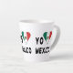 Kleine latte Tasse verwendet eine herzförmige mexikanische Fahne anstelle des Wortes LIEBE, oder AMO. Design liest YO AMO MEXICO, oder ich LIEBE MEXICO, und zeigt auf drei Seiten. Die Fahne ist grün, weiß und rot mit einem Adler in der Mitte. Spaß auf Cinco de Mayo. Großes Geschenk für die Hauswärmung.