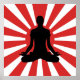 Schwarze Yoga-Pose mit roter, aufsteigender Sonnenuntergang, rotes, weißes und schwarzes Poster