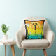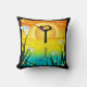 Ein Mädchen, das ihr Yoga vor einem hellen Sonnenuntergang hinter einem Teich mit weißen Lilien im Vordergrund macht, Vögel fliegen darüber. Dieses Design ist funky und lustig - spielerisch und dennoch raffiniert - das Kissen hinten ist das gleiche wie die Vorderseite.