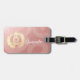 Yoga Studio Meditation Instructor / Life Coach / Healer / Reiki Master / Massage Therapy Custom Luggage Tag Template - Elegante Kalligraphie Imitate Gold Foil Yoga Meditation Easy Pose / Sukhasana Pose mit ZEN Symbol und OM Symbol auf Rose Gold Textur Hintergrund.