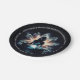 Modernes Yoga Fitness Studio / Meditation Instructor / Personal Trainer / Life Coach / Heiler / Reiki Master / Massage Therapy Paper Plate. Eine Frau sitzt in Sukhasana, auch bekannt als die Easy Pose, die eine gemeinsame Haltung für Yoga und Meditation ist. Sie ist von einem ätherischen, wirbelnden Nebel umgeben, der ein weiches Glühen ausstrahlt. Der Nebel bildet um sie eine abstrakte, Blume ähnliche Form. Der Nebel und die Blume symbolisieren ihre spirituelle Energie und Verbindung zur Natur. Die Lotus-Blume ist in vielen Religionen und Kulturen ein heiliges Symbol und steht für Reinheit, Erleuchtung, Wiedergeburt und Schönheit. Die Lotus-Blume ist auch mit Yoga und Meditation verbunden, da sie häufig als Sitz für Gottheiten oder als Konzentrationsfokus verwendet wird. Die weiße Lotus-Blume im Bild bedeutet ihre innere Ruhe und Harmonie. "Wenn du Frieden in dir selbst findest, wirst du zu der Art von Person, die in Frieden mit anderen leben kann." - Friedensstiftung -