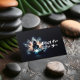 Modernes Yoga Fitness Studio / Meditation Instructor / Personal Trainer / Life Coach / Heiler / Reiki Master / Massage Therapy Geschenkgutschein Vorlage - Eine Frau sitzt in Sukhasana, auch bekannt als die Easy Pose, die eine gemeinsame Haltung für Yoga und Meditation. Sie ist von einem ätherischen, wirbelnden Nebel umgeben, der ein weiches Glühen ausstrahlt. Der Nebel bildet um sie eine abstrakte, Blume ähnliche Form. Der Nebel und die Blume symbolisieren ihre spirituelle Energie und Verbindung zur Natur. Die Lotus-Blume ist in vielen Religionen und Kulturen ein heiliges Symbol und steht für Reinheit, Erleuchtung, Wiedergeburt und Schönheit. Die Lotus-Blume ist auch mit Yoga und Meditation verbunden, da sie häufig als Sitz für Gottheiten oder als Konzentrationsfokus verwendet wird. Die weiße Lotus-Blume im Bild bedeutet ihre innere Ruhe und Harmonie.