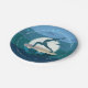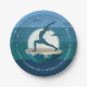 Yoga Fitness Studio / Meditation Instructor / Personal Trainer / Life Coach / Heiler / Reiki Master / Massage Therapie Papier Platte. Elegante Yoga Meditation Pose / Pose des Halbmonds / Crescent Lunge Pose / Halbmond Pose (Ardha Chandrasana) / Surya Namaskar / Anjaneyasana Pose / Sun Salutation / Krieger 1 Yoga Pose / Yoga Moon Salutation / Chandra Namaskar / Silhouette auf Fantasy Island Floating in Air unter Moon Onlight.