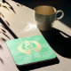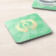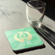 Moderne Yoga Studio Meditation Instructor / Life Coach / Heiler / Reiki Master / Massage Therapy zitiert harten Kunststoff-Untersetzer. Elegante Kalligraphie Imitate Gold Foil Yoga Meditation Leichte Pose / Sukhasana Pose mit ZEN Symbol und OM Symbol auf Green Gold Foil Textur Hintergrund.