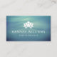 Elegante, horizontale Visitenkarten für Yoga-Studios, Yogalehrer, Wellness-Center oder Wellness-Profis. Diese Karte zeichnet sich durch eine weiße Lotus-Blume auf einem subtilen, blau-grünen Hintergrund mit beruhigenden Wellen aus.