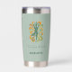 Yoga instructor retro swirls name quote sage green thermobecher