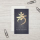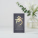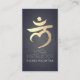 Yoga Meditation Instructor Business Card Template - Elegantes White and Imitate Gold Foil Yoga Meditation Magical Root Chakra Symbol / Muladhara Chakra Symbol / Samen Mantra LAM Sanskrit Letter on Navy Blue Grunge Hintergrund.