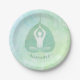 Yoga Studio Meditation Instructor / Life Coach / Heiler / Reiki Master / Massage Therapy Paper Plate. Modernes Grünes Bodhi Leaf und Yogi in leicht sitzender Pose / YOGA Leichte Pose / Sukhasana Pose auf grünem Blumengeflecht Hintergrund. "Wenn du Frieden in dir selbst findest, wirst du die Art von Person, die in Frieden mit anderen leben kann."